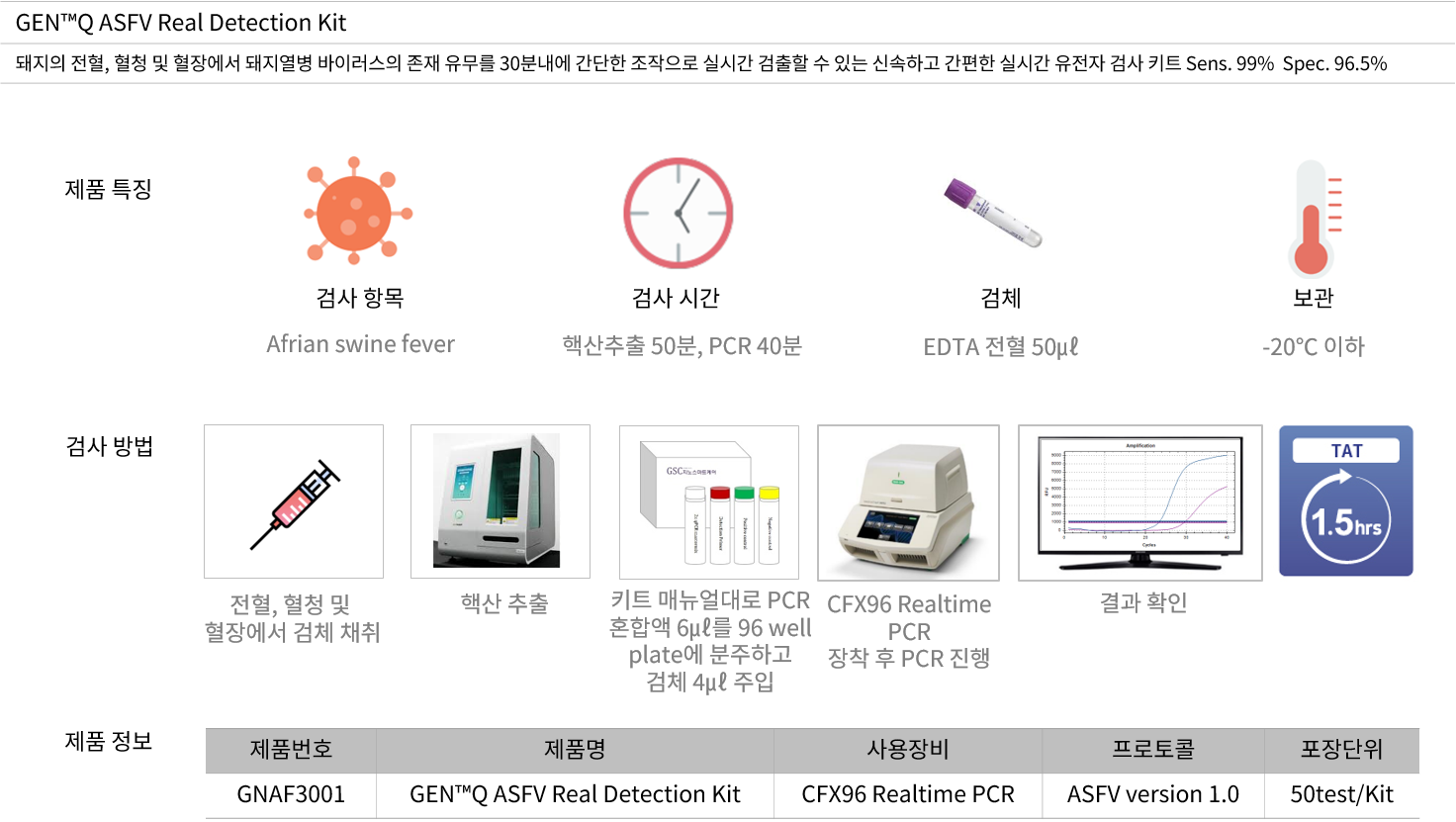 제품소개 강아지 감염성 질환 진단 제품 고양이 감염성 질환 진단 제품 돼지 감염성 질환 진단 제품 돼지 감염성 질환 진단 제품 GEN™Q ASFV Real Detection Kit GEN™Q PED Real Detection Kit